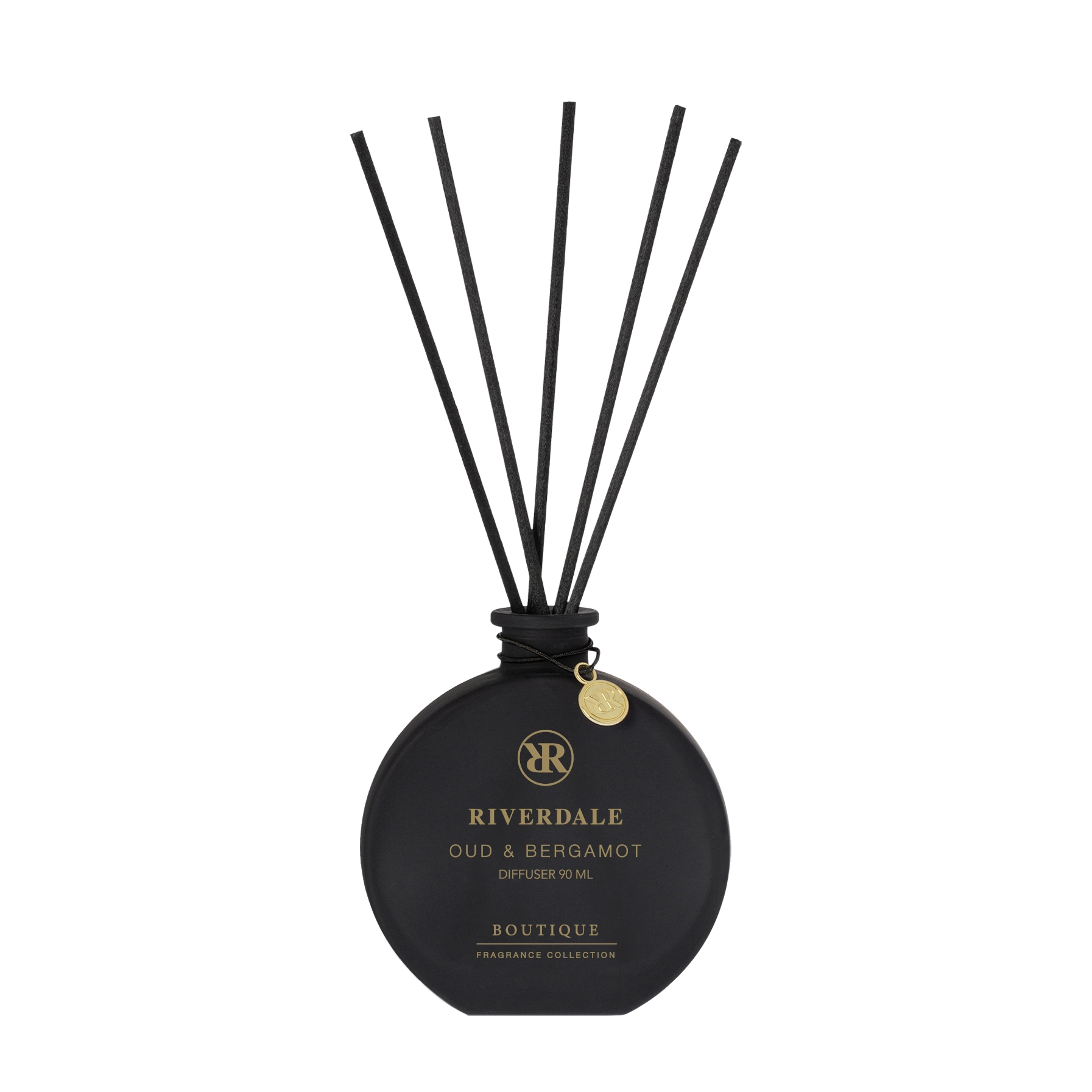 The Riverdale Boutique fragrance sticks Oud & Bergamot 90ml fills the room with the wonderful scent for 3 to 5 weeks. The fragrance sticks are encased in a beautiful black glass bottle with black sticks and radiate timeless elegance, enriching your interior.