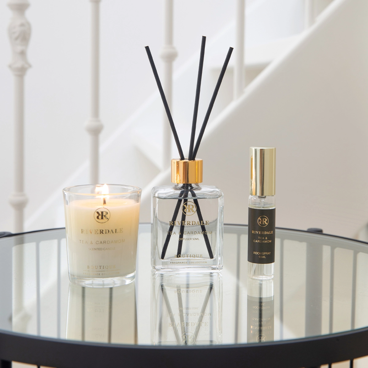 Spoil your senses with our Boutique giftset small with scents from Tea & Cardamom. This luxurious gift package contains a harmonious combination of a scented candle, room spray and fragrance sticks. The shapes of the different products are perfectly matched and form a jewel for any room.